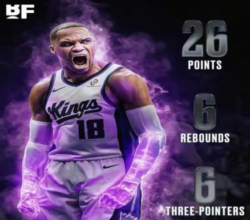 此役威少出戰(zhàn)31分鐘,投籃14中9,三分9中6貢獻26分2板6助。