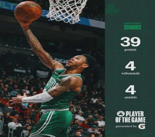 除此之外,新援安芬尼-西蒙斯的表現(xiàn)也能大吹特吹,勢頭直奔最佳第六人獎項,本賽季至今出戰(zhàn)40場全部替補,場均上陣24.3分鐘,貢獻14.1分2.4板2.6助,場均以40.5%命中率扔進2.7記三分球,當(dāng)今凱爾特人最重要的第二陣容火力輸出點。