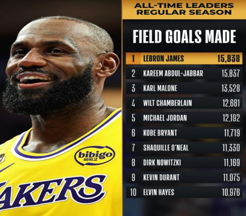 首節(jié)詹姆斯4中3拿到6分3籃板1蓋帽,他的運(yùn)動(dòng)戰(zhàn)進(jìn)球已經(jīng)追平賈巴爾15837個(gè),還差一個(gè)運(yùn)動(dòng)戰(zhàn)進(jìn)球就超過(guò)賈巴爾。