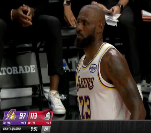 末節(jié)詹皇一度發(fā)力追分,但坑太大追不上了。關(guān)鍵是,詹姆斯在第三節(jié)最后時(shí)刻甚至還受傷了,當(dāng)時(shí)時(shí)間還剩下16秒,球隊(duì)落后19分,勒布朗壓時(shí)間完成一個(gè)壓哨最后一攻,開(kāi)拓者對(duì)他進(jìn)行包夾,但是他從人群當(dāng)中穿了過(guò)去,加速?zèng)_到籃下,強(qiáng)行完成一次逆天高難度滑翔上籃。