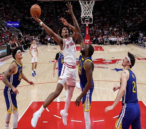 本場比賽中,看起來火箭的先發控衛阿門-湯普森(Amen Thompson)打出了不錯的數據,實際上他的表現是非常一般的。阿門全場出場43分30秒,投籃15中8,三分線外2中1,罰球2中1,得到了18分10籃板5助攻4搶斷的兩雙數據,其中還包括了7個前場籃板,還有1次失誤和1次犯規,正負值為+6。阿門在前后場籃板爭搶以及防守方面的表現都是值得肯定的,他搶到了大量的前后場籃板,他也有著很高的防守侵略性,他也利用轉換進攻拿到了不少分數。然而另一方面,阿門作為一名控衛,沒有基本的傳球和組織能力,而且他的技術非常粗糙,并不能在進攻端完成稍微復雜一些的得分,他在進攻端的功能其實是非常單一的,完完全全就是一個輔助型球員的樣子,他在進攻端對于球隊空間的負面影響也是肉眼可見的。
