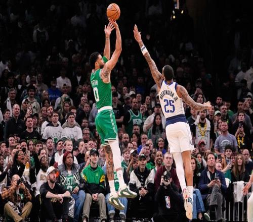 中場休息回來,凱爾特人連續兩節單節得分30+,獨行俠一波8-2攻勢反超,凱爾特人連得8分奪回領先,其中塔圖姆再中三分。凱爾特人逐步擴大74-66領先優勢,獨行俠連追6分,謝爾曼拋射命中,克萊三分追分。凱爾特人一波8-0攻勢擴大優勢,凱爾特人隨后繼續逐步擴大兩位數領先優勢,凱爾特人單節32-27凈勝5分,三節結束凱爾特人擴大90-80領先獨行俠。前三節比賽,凱爾特人三分39中14,布朗22+6+5與塔圖姆12+9+6,引領4人得分上雙;獨行俠三分27中10,克萊16分與弗拉格12+5+5,引領4人得分上雙。