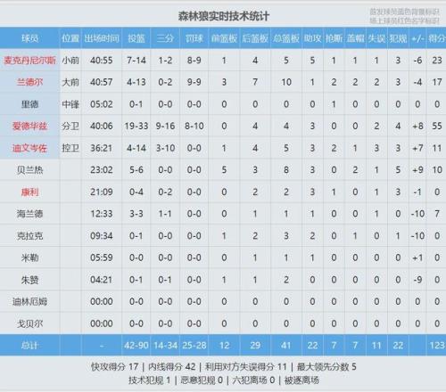 第二節和第三節就像過山車,兩隊各打了一節好球。森林狼第三節轟下40分,單節追回13分。三節戰罷,森林狼84-96落后12分,比賽還有懸念。愛德華茲前三節砍下29+2+2,麥丹23+4+4。文班27+6+3,福克斯18+2+8。