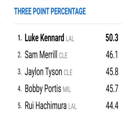 肯納德可以說是湖人本賽季的最大驚喜。隨著一場場比賽進行,肯納德與東契奇、里夫斯、詹姆斯并肩作戰時,看起來也越來越適應湖人的體系。隨著時間推移,希望他能增加出手,更多的出手也將帶來更出色的得分表現。