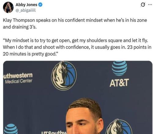 賽后被問到本場比賽自己狀態為何如此神勇,克萊表示“我的心態就是找到空位,調整好姿勢然后果斷出手,當我這樣做時投籃通常都能命中,20分鐘拿23分已經是不錯的表現啦。”