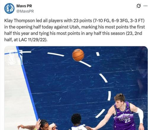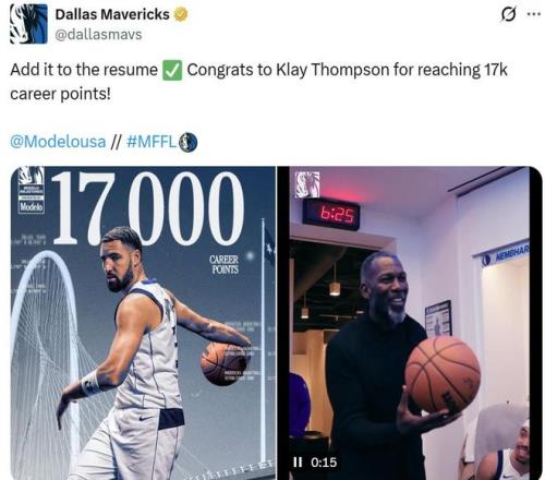 獨行俠官方也專門曬圖慶祝克萊連續兩場比賽迎來里程碑,在本場總得分突破17000分大關之前,克萊在前一場對陣爵士隊的比賽中,生涯三分命中率才超越利拉德升至NBA歷史第四。