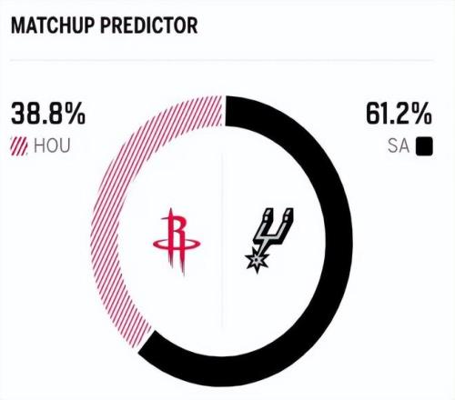 賽前,美媒ESPN對本場比賽進行了勝率預測,馬刺隊勝率高達61.3%,火箭勝率則僅有38.7% ,差距還挺明顯。