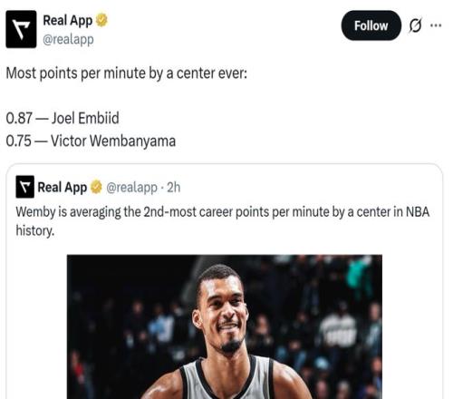 這樣的表現也是本賽季文班恐怖統治力的直觀展現,防守端他擁有足以撐起體系的影響力,讓對手根本不敢輕易沖擊內線,進攻端他又內外兼具效率極度恐怖,過去3場比賽一共才打了90分鐘就合計轟下94分,場均交出接近31+11+4帽的夸張數據。