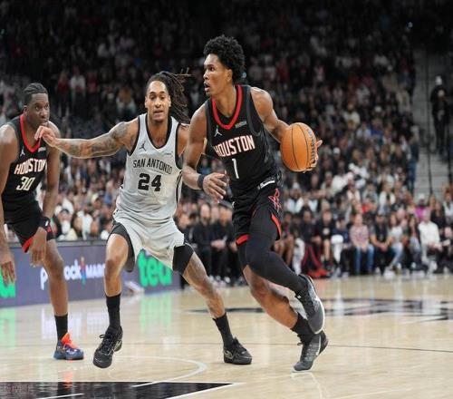 第二節(jié)雙方輪換陣容階段,文班回來展現(xiàn)天賦,馬刺一波6-0反超。阿門三分止血,謝潑德突破拋投,申京籃下打進,卡斯爾三分外加罰球,謝潑德連續(xù)失誤,凱爾登三分命中馬刺50-39領(lǐng)先到了11分,烏度卡暫停。暫停以后,史密斯連續(xù)中投止血,文班大帽伊森,史密斯再罰球。伊森又送卡斯爾2+1。文班下去以后,火箭抓住機會縮小分差,馬刺喊個暫停。回到比賽,哈珀和謝潑德對飆三分,凱爾登異常活躍,馬刺三人合圍杜蘭特,然后進攻抓謝潑德,文班壓哨三分命中,半場結(jié)束馬刺69-57領(lǐng)先12分。