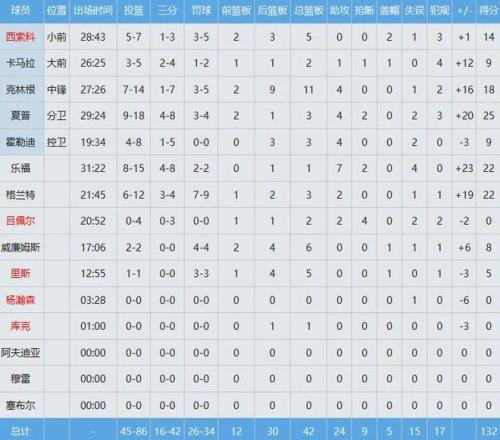 湖人數據如下: