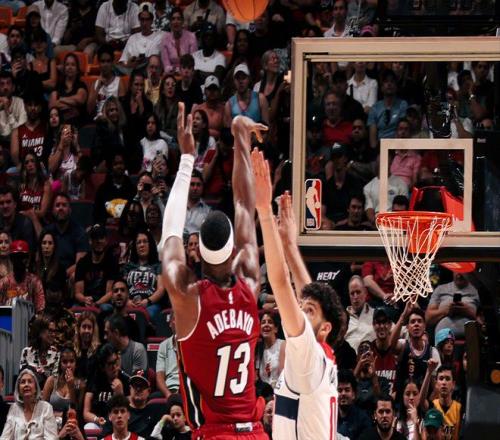 體育播報3月11日宣 NBA常規賽,熱火150-129拿下奇才。全場比賽,阿德巴約出戰42分鐘,投籃43中20,三分22中7,罰球43...