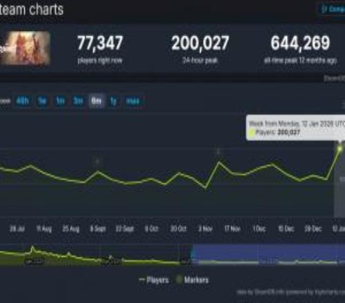 電競體育1月19報道?近日,由漫威授權的動作游戲《漫威宿敵》伴隨新角色死侍上線 Steam 平臺后表現亮眼,輕松創下了近八個月以來的最高在線人數紀錄,目前在線人數已破20萬。