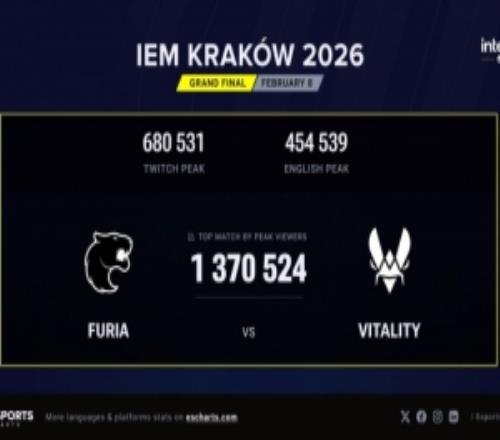 電競體育2月9報道 根據(jù)Esports Charts網(wǎng)站的數(shù)據(jù)統(tǒng)計,IEM克拉科夫的最高收視人數(shù)為137萬人,發(fā)生在Vitality對陣FURIA的總決賽中。這一數(shù)據(jù)超越了2025年的IEM卡托維茲(129萬人)成為歷史上收視率最高的非Major賽事,同時在歷史收視率總榜中也能排名第8位!