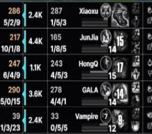 第二局比賽JDG下路Gala狀態(tài)毫無起色,更是出現(xiàn)冒進W開團被蹲帶隊送3人的尷尬場面,最終全場僅拿到4-4-1的數(shù)據(jù)