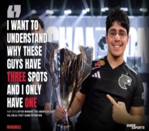 電競(jìng)體育3月9報(bào)道 在今晨結(jié)束的英雄聯(lián)盟美洲杯決賽中,F(xiàn)UR以3-0橫掃C9奪冠,賽后FUR打野Tatu在采訪中提到了對(duì)全球總決賽名額分配的問題,具體如下: