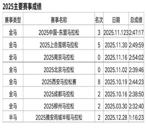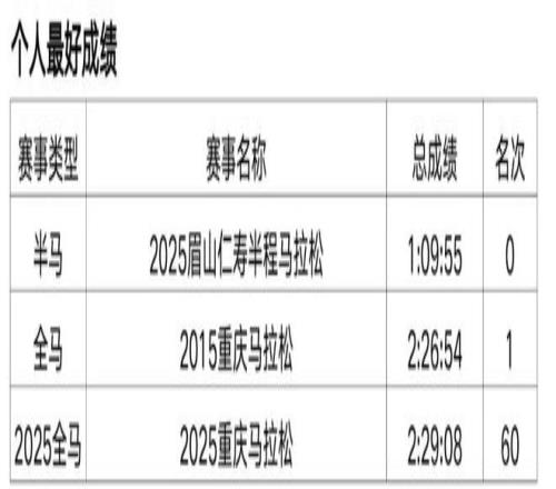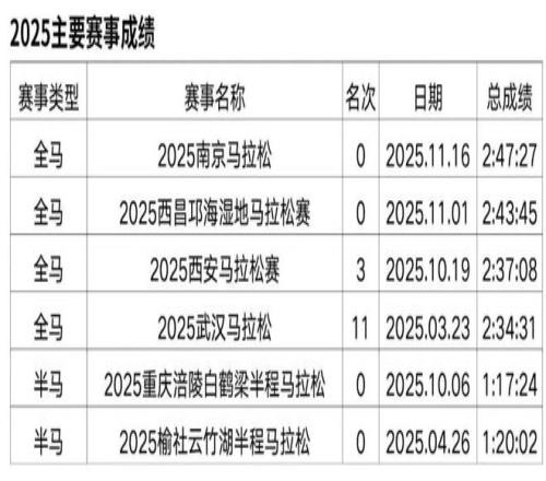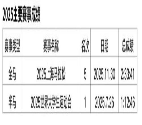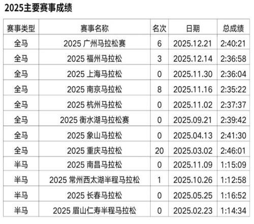 朱卿的全馬PB來自2025年重馬,2:30:25。她是近年馬拉松賽道崛起的實力派名將,2023年12月因健身開啟首馬,從此一發不可收拾。短短兩年間,她斬獲武漢半馬、湛江半馬等多項賽事冠軍,拿下杭馬、青馬等中國籍冠軍,還曾獲“大眾一姐”稱號并簽約特步。她用汗水書寫逆襲,以清醒心態面對起伏,成為跑圈勵志標桿。