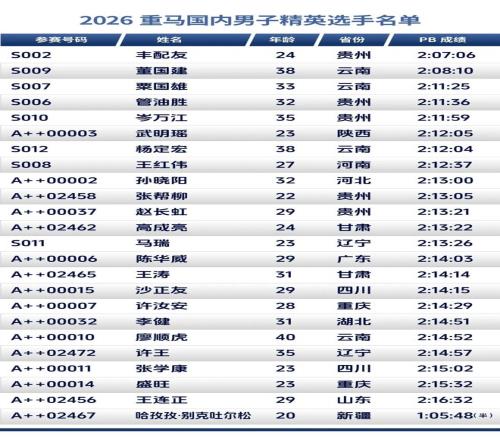 國內男選手方面,董國建和豐配友之間的對決成為一大亮點。本打算在廈馬退役的董國建打消了退役的念頭,選擇三戰重馬,而從全運會失意中走出來的豐配友還能繼續他對國內冠軍的收攬嗎?此外,新生代選手馬瑞、盛旺、武明瑤也將悉數上場。