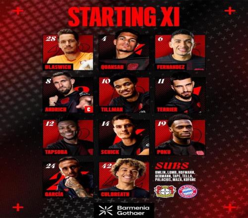 拜仁客戰(zhàn)勒沃庫(kù)森:凱恩替補(bǔ),奧利塞、迪亞斯首發(fā)