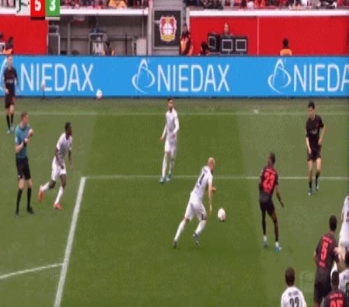 第90+6分鐘,打瘋了,馬里克-蒂爾曼輕松得分,勒沃庫森6-3