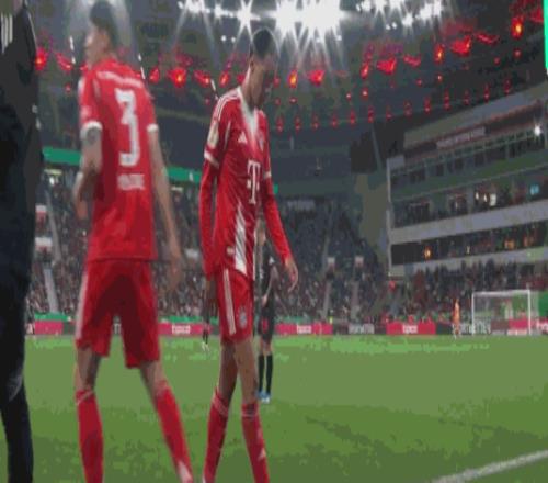 第84分鐘,拜仁換人,金玟哉換下穆西亞拉