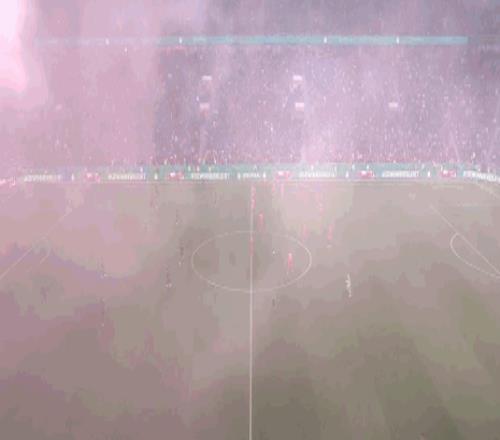 真硝煙彌漫,拜耳球場里全是球迷燃放的煙霧
