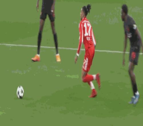 第90+3分鐘,格雷茨卡傳球,迪亞斯破門,拜仁2-0
