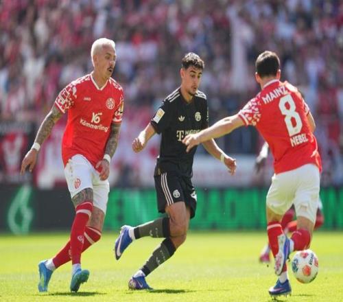 比賽第15分鐘,拜仁丟球了!佐野海舟在禁區右側起球傳中。科爾直接凌空射門,皮球彈地后鉆入球門。美因茨獲得夢幻開局。第21分鐘,貝克爾在右側起球傳中,皮球直接奔向球門。烏爾比希單掌把球撲了出去。8分鐘后,美因茨再次進球。美因茨踢出犀利的反擊,內貝爾在門前抓住機會補射破門。