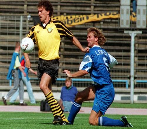 對于歐洲歷史稍微有所了解的朋友,應該都知道德國跟奧地利的關系頗為親近。那么,在奧地利聯賽表現出色的馬紹爾,自然能引起德甲俱樂部的關注。1993年的夏天,馬紹爾登陸德甲聯賽,成為德累斯頓迪那摩的一員。他參加的首場德甲聯賽,就大演帽子戲法。