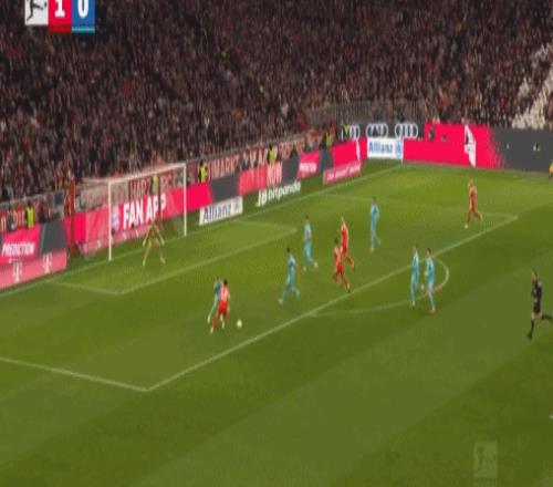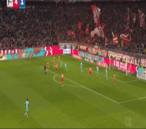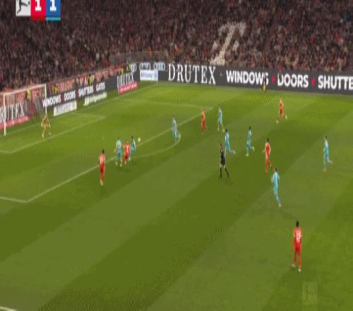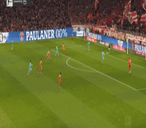 第45分鐘,迪亞斯再造點(diǎn),凱恩點(diǎn)射雙響,拜仁2-1霍芬海姆