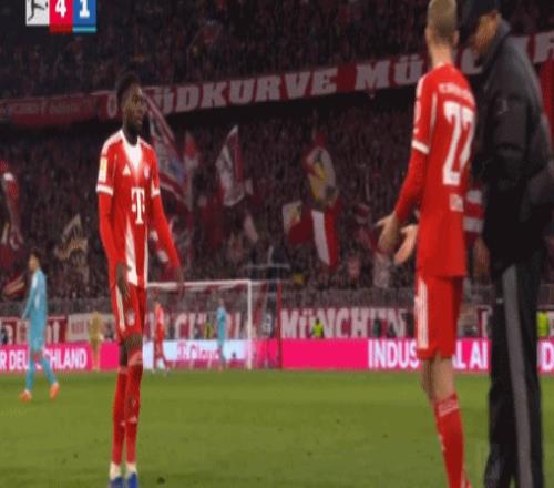 第79分鐘,萊默爾傷愈登場,阿方索-戴維斯被換下
