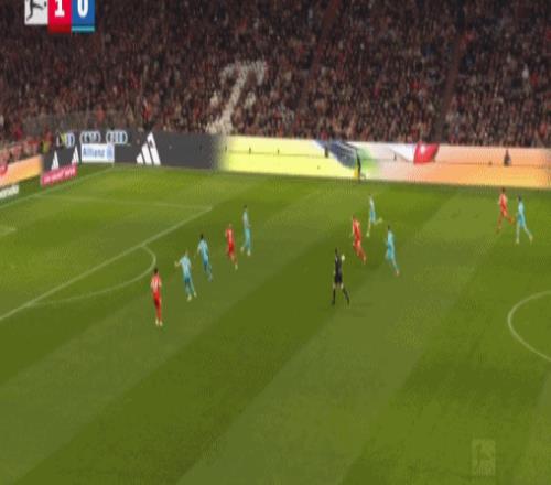 第62分鐘,奧利塞送助攻,迪亞斯破門完成雙響,拜仁4-1霍芬海姆