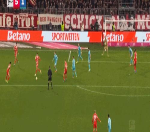 第45+2分鐘,凱恩送助攻,迪亞斯破門,拜仁3-1霍芬海姆
