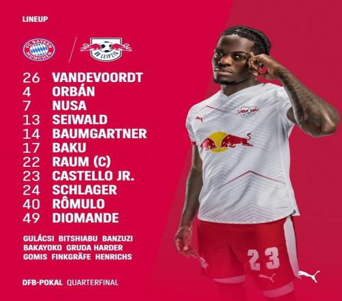 北京時間2月12日凌晨3點45分,德國杯1/4決賽展開一場焦點戰役,拜仁對陣萊比錫。賽前,雙方公布首發陣容。球員名...