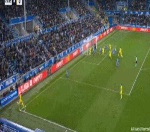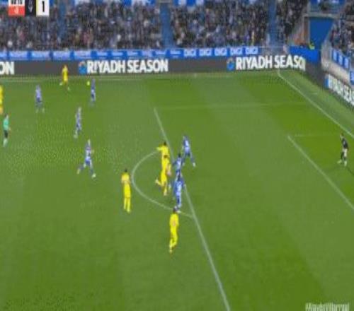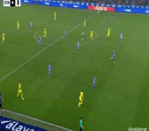 第40分鐘,拉法-馬林頭球解圍變烏龍,阿拉維斯1-0比利亞雷亞爾