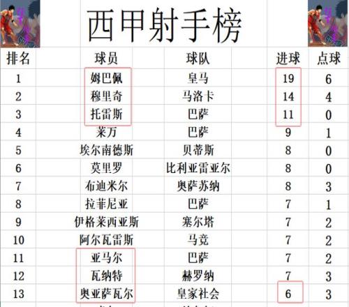 射手榜方面,姆巴佩19球領(lǐng)跑,穆里奇14球緊隨其后,托雷斯今天首發(fā)未能進(jìn)球,還是11球排在第3。萊萬(wàn)替補(bǔ)登場(chǎng)同樣沒(méi)有進(jìn)球,9球排在第4。奧亞薩瓦爾打入一球,還差1球才能擠入前十。