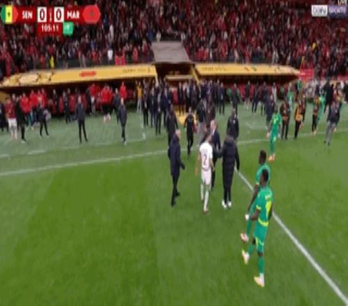 而比賽常規時間讀秒階段,摩洛哥曾一度獲得絕殺點球。當時迪亞斯在塞內加爾禁區內被對方防守球員拉了肩膀后倒地,主裁觀看VAR后判罰點球。