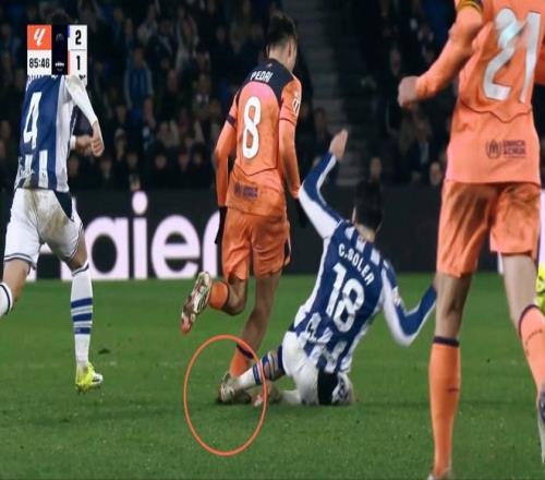 佩德里屢遭兇狠的犯規,但是裁判始終無動于衷。孔德門前頭球,重重擊中橫梁彈出!第88分鐘,索萊爾飛鏟佩德里,裁判經過視頻回放鑒定后,直接紅牌罰下。經過長達9分鐘的補時,最終10人的皇家社會守住了勝局。