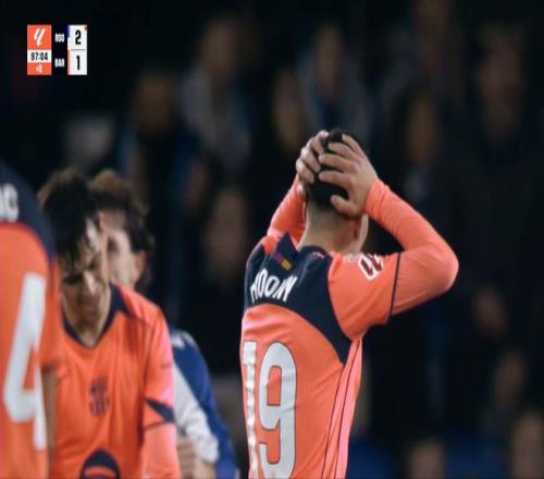 德容、亞馬爾先后破門,但是均為越位在先,被直接吹掉。第32分鐘,皇家社會發動快速反擊,邊路送出精彩的傳中,后點插上的奧亞薩瓦爾近距離抽射破門,1:0!落后的巴塞羅那頻繁向對手的禁區發動猛攻,亞馬爾禁區閃轉騰挪勁射被撲出!補時的最后一分鐘,亞馬爾造點球,但是依舊因為越位在先,直接吹掉!半場比賽結束,巴薩暫時一球落后。