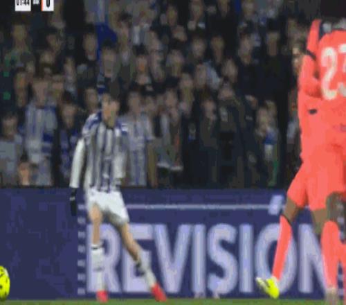 第89分鐘,索萊爾飛鏟佩德里,主裁觀看視頻回放直紅將前者罰下