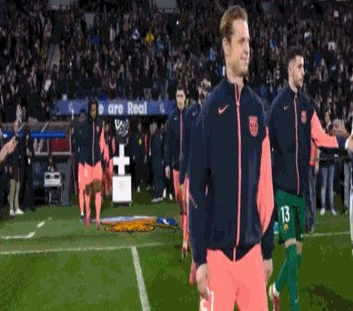 巴薩球員入場,皇社球員列隊(duì)歡迎西超杯冠軍得主