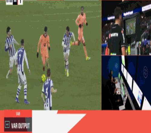 第45+7分鐘,亞馬爾禁區(qū)內(nèi)倒地,主裁聽取VAR后判罰越位在先取消點(diǎn)球