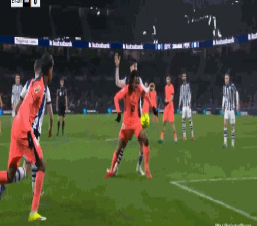 第9分鐘,費(fèi)爾明破門,但是因奧爾莫先前搶斷犯規(guī)被判無效