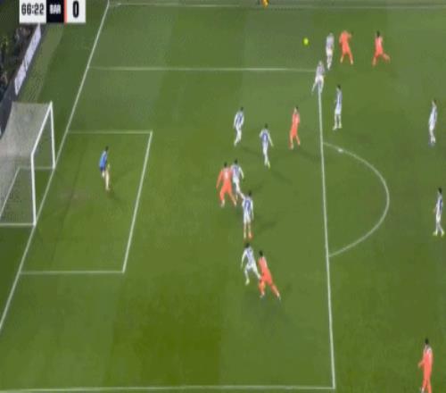傷停補時第2分鐘,佩德里妙傳,亞馬爾禁區右側插上,小角度起腳兜射,雷米羅飛身單掌將球撲出,皇家社會逃過一劫。