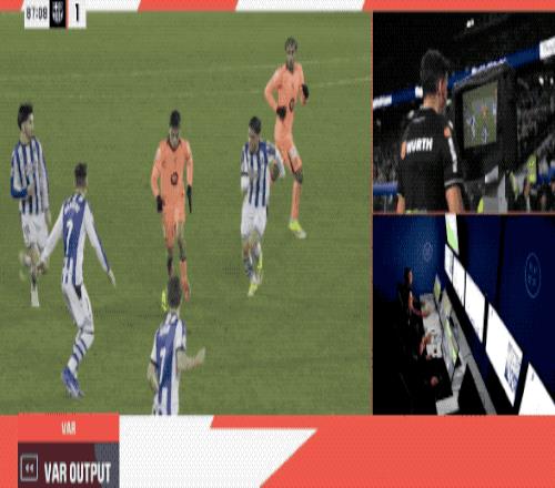 開場不到1分鐘,格德斯邊路傳中,隊長奧亞薩瓦爾包抄頭球破門,但皇家社會3名球員都處于越位位置,進球被秒吹。