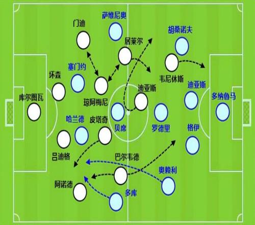 他倆是前場2個拿球點,再加上左前衛居萊爾的技術能力,保證攻防轉換時不輕易丟球,同時吸引防守力量向他們包圍,也給了右路巴爾韋德更多的前插機會。