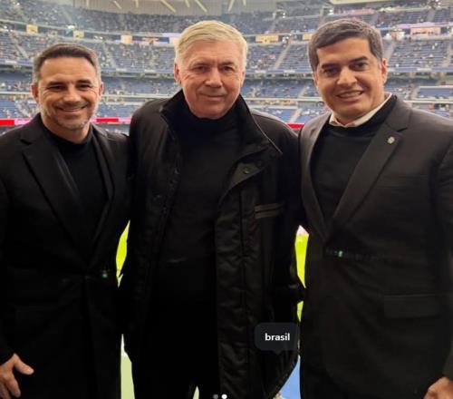照片中,安切洛蒂站在觀眾席上觀看比賽,神情興奮,顯然對皇馬的勝利感到十分高興。此次他與巴西國家隊總監同行,也旨在考查皇馬陣中的巴西國腳們的表現。