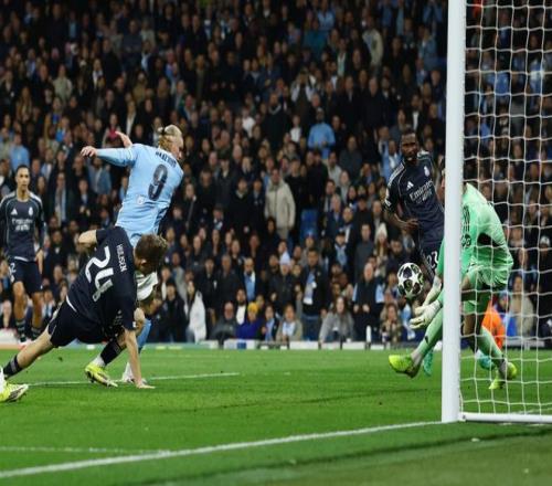 半場結(jié)束前,哈蘭德借多庫突破造成的混亂扳回一球,但這粒進球更像是多納魯馬式的門將失誤。皇馬的進攻同樣制造威脅,布拉希姆那腳繆斯附體般的射門,僅差毫厘便能鎖定勝局。