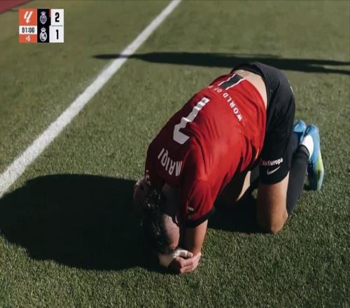 第80分鐘,皇馬前場獲得一個位置非常不錯的定位球,但是米利唐的頭球遺憾高出橫梁。阿韋洛亞雖然接連做出換人調整,但是進攻端的效率卻始終沒有提高。但是第88分鐘,皇馬利用角球的機會,由米利唐頂進球門,1:1!皇馬終于扳平比分。補時進入第一分鐘,馬略卡反擊到禁區,穆里奇停球勁射,2:1!幫助馬略卡再度取得領先,進球后的穆里奇流淚盡情發泄。