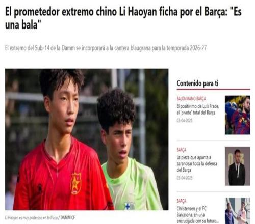 這家西媒還直言,除競技層面外,如果李昊炎能夠在巴薩青訓體系中持續成長,其中國背景也可能在市場層面帶來額外價值,尤其是在亞洲市場的關注度方面。
