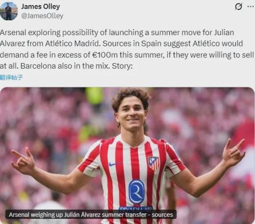 之前DO只是說阿森納去年夏天曾考慮過阿爾瓦雷斯,今后有可能繼續簽這個級別的球員,但JO直接說今年夏天還想買他!是不是真的我覺得還得看看再說。